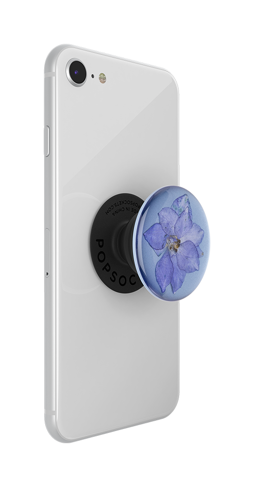 Manténte en armonía con la madre naturaleza con este PopGrip que viene con un lindo diseño compuesto de una flor real Espuela de Caballero, prensada y sellada en resina morada para darte felicidad a todos los lugares a los que vayas. Se bella todos los días y noches.
